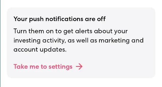 In the Sharesies app, we have a banner component in our design system which we use for surfacing important, succinct and actionable messages to users. An example of this lives in our notifications setting screen, we show a banner if notifications are disabled at a system level.