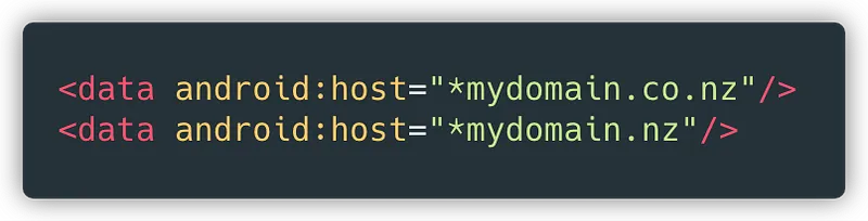 For bigger companies, there comes a time where you have multiple hosts you need to handle. These might be things like in-house marketing domains, new websites etc. For these kind of situations, it’s valid to add all your hosts into one intent filter element, but you should try to avoid this as much as possible. By having more than one host definition in the same intent filter, you can complicate things by overlapping the URL paths you handle for the separate domains.